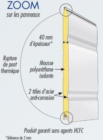 Entre les 2 tôles se trouvent 40mm de mousse polyuréthane injectée.
