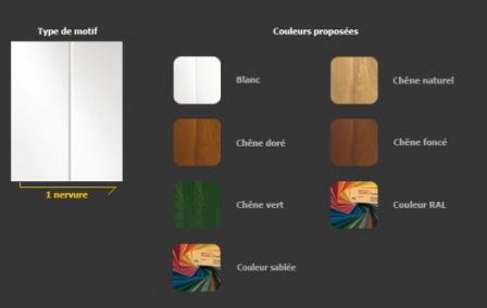 Les panneaux sont constitués de 2 tôles en acier galvanisé d’une épaisseur de 0,5mm avec 2 couches de peinture polyester sur apprêt epoxy.
